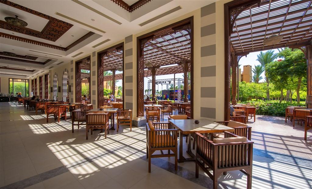 hotel) - strava formou plné penze + neomezené množství rozlévaných alkoholických a nealkoholických nápojů místní výroby servírované ve sklenicích • bary a restaurace: - hlavní restaurace Andalus - italská restaurace Casa Mia - indická restaurace Taj Majhal - plážová restaurace Sea Breeze - snacky - obby bar Mazazeek - bar u hlavního bázenu - bar u relax bazénu - 2 plážové bary - disco - bedouinský stan a kavárna |