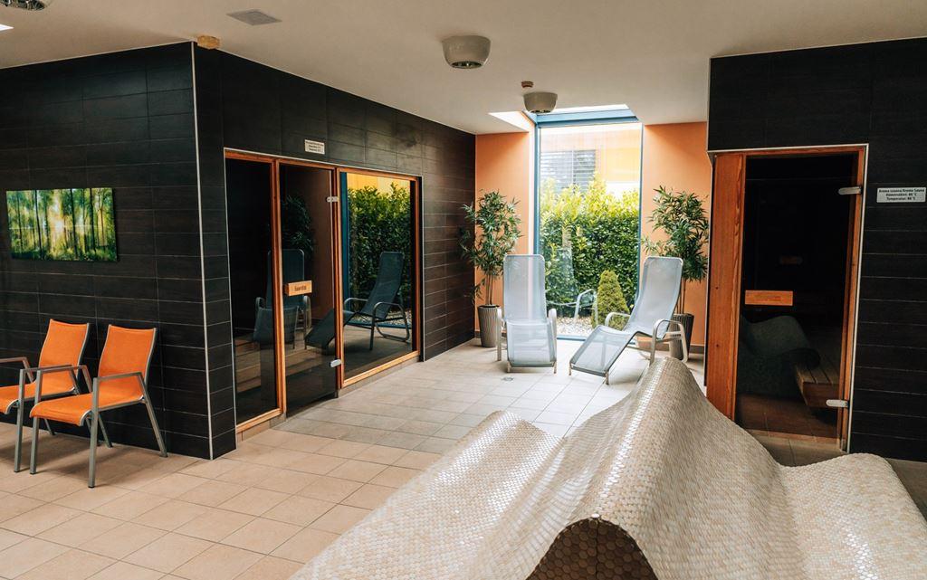 V hotelovém celoročně přístupném wellness centru, které se nachází v nejvyšším patře, můžete relaxovat ve vyhřívaném bazénu s masážními tryskami nebo si vybírat ze čtyř druhů saun a široké nabídky masáží. K dispozici hostů je koutek s občerstvením. Lze zde využít i střešní odkrytou relaxační terasu s lehátky. Hotelové wellness centrum je hostům k dispozici denně od 7:30 do 19:30.